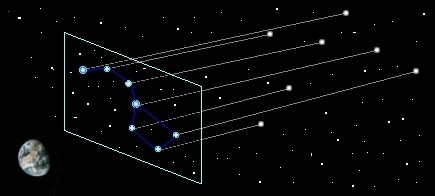 Las constelaciones no existen como tal, sino que son un efecto de nuestra perspectiva visual por la que hemos ido agrupando en conjuntos aquellas estrellas más brillantes a cuyo asterismo (dibujo formado por la unión de puntos) le hemos puesto nombre. Las estrellas que las forman no tienen por qué tener ningún tipo de relación entre sí, ni siquiera por proximidad.