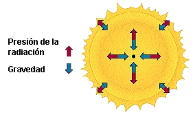 Una estrella como el Sol pierde 4 millones de toneladas por segundo en ese proceso de conversión que son emitidas en forma de luz y calor. Durante la etapa media de la vida de una estrella (sea cual sea su duración total) se mantiene un equilibrio entre la presión de la radiación que tiende a expandir la estrella y la fuerza de la gravedad que tiende a contraerla.