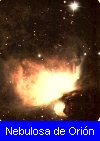 Un ejemplo de nebulosa de emisión es la Nebulosa de Orión (M42). Se encuentra a 1.800 años luz del Sol y está formada por gases que rodean a una estrella múltiple (el asterismo conocido como Trapezio) que se excitan con la energía de ésta. |