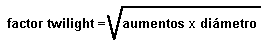 El factor twilight se obtiene al poner en relación los aumentos y el diámetro de los binoculares y proporciona la capacidad del instrumento para captar detalles con poca luz. Cuanto mayor sea el valor obtenido mayor será esa capacidad.