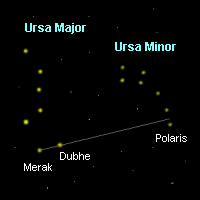 Otra manera sería trazar una recta desde la estrella Merak a Dubhe de Ursa Major y prolongarla en el firmamento. La orientación de esas dos estrellas conduce siempre a Ursa Minor y a las proximidades de su estrella Polaris que estábamos buscando.