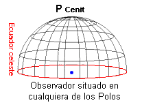 Las tres situaciones resultan bastante intuitivas. Para un observador en cualquiera de los dos Polos (latitud 90°) todas las estrellas son circumpolares, sólo ve el hemisferio celeste del polo correspondiente y el límite de su "ventana" es precisamente el Ecuador celeste (90-90=0°). Pero un observador en el Ecuador (latitud 0°) puede ver completos los dos hemisferios celestes (90-0=90°) aunque para él no habrá estrellas circumpolares y los dos polos celestes estarán justo en el horizonte de su "ventana". La tercera situación la hemos visto en los párrafos anteriores.