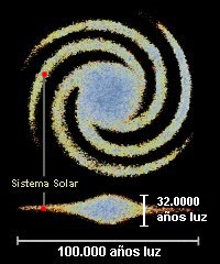 De igual manera que la Tierra y demás planetas orbitan en torno al Sol, éste y el resto del Sistema Solar orbita en torno al centro de la Galaxia en el que se cree la existencia de un masivo agujero negro. No nos vamos a extender mucho en estos temas porque no corresponde ahora hablar de ellos, pero era necesario indroducirlos para poder decir que todas las estrellas que vemos en el firmamento pertenecen a nuestra Galaxia. Fuera de ella no hay estrellas, en todo caso cúmulos de ellas y otras galaxias.