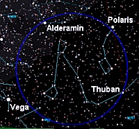 Polaris la que obstenta el privilegio de erigirse como la guía de los navegantes en el hemisferio norte (aunque no marcará el polo norte celeste exacto hasta el 2015), pero eso no fué así hace miles de años ni lo será dentro de otros tantos.