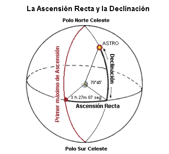 Ahora que ya disponemos de los dos círculos máximos fundamentales -el ecuador celeste y el primer máximo de ascensión- podemos situar cualquier objeto en la esfera celeste: