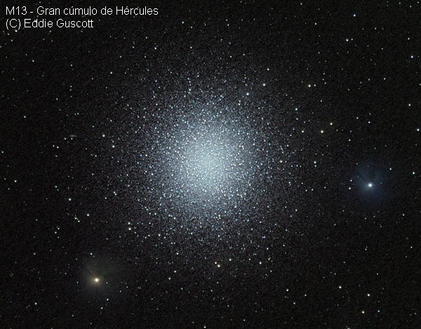 Se contabilizan 150 cúmulos globulares en nuestra galaxia y aunque se desconoce su origen se calcula que se formaron al mismo tiempo que ella hace unos 11.000 millones de años, apenas 4.000 millones de años después del Big-Bang. Están compuestos por estrellas viejas y frías (estrellas rojizas de la Población II). Dos famosos cúmulos globulares que pueden ser localizados a simple vista son M47 en la constelación de Tucana y el gran cúmulo de Hércules (M13) en la constelación del mismo nombre. Mucho más cercano a nosotros que estos dos es el cúmulo Omega Centauri, a 17.000 años luz. M5 en la constelación de Serpens se encuentra a 27.000 años luz de nosotros. La observación de los cúmulos globulares requiere el empleo de telescopios luminosos de focales cortas y aberturas grandes. A nivel de aficionado puede resultar suficiente un instrumento con longitud focal F=750 mm y abertura D=150 mm, lo que lo convierte en un instrumento con relación focal f/5. Amplía información con este interesante artículo del profesor Vittorio Castellani. |